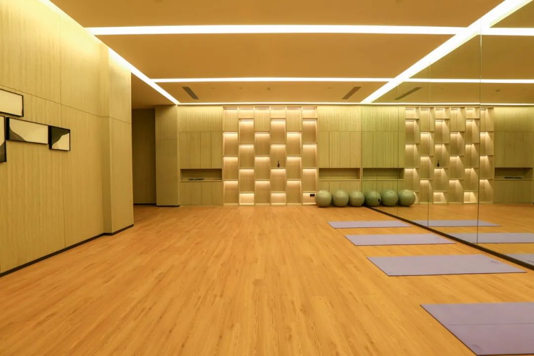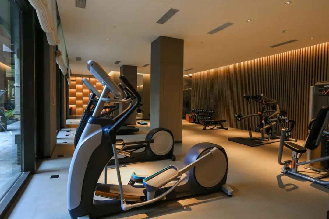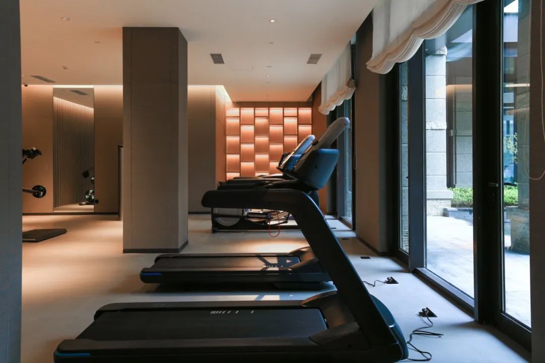 健身房里的设施也很齐备,而且对着中庭花园,做起运动来也应该格外惬意享受吧。