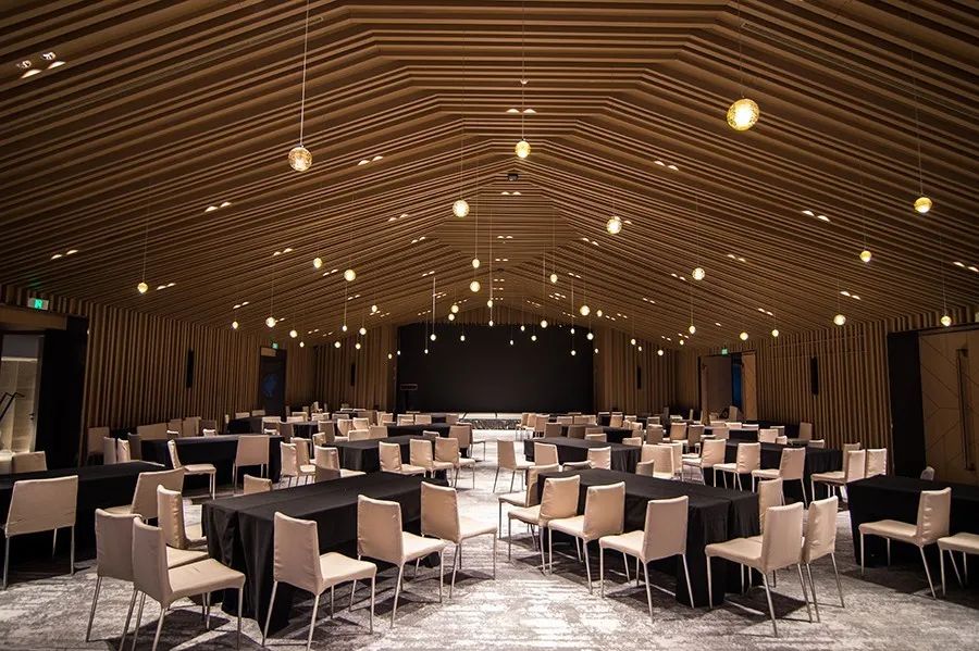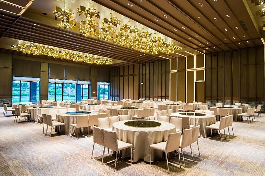 酒店也能满足商务会议及婚宴的需求。超大的无柱宴会厅和多个多功能厅,能够满足各种需求。更设有一间“钻石星空顶”宴会厅,根据钻石切割面来设计的屋顶上,垂下点点星光,毫不浪漫,简直太适合婚宴了。