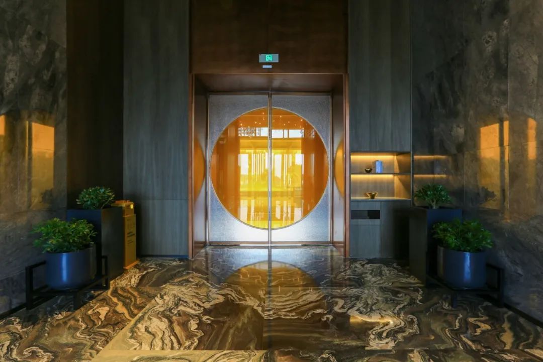 走进以苏州园林月洞门为设计灵感的大门,是酒店的中轴景观大堂。