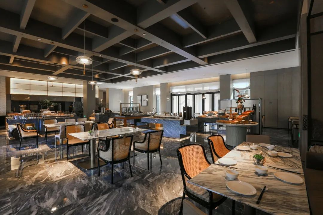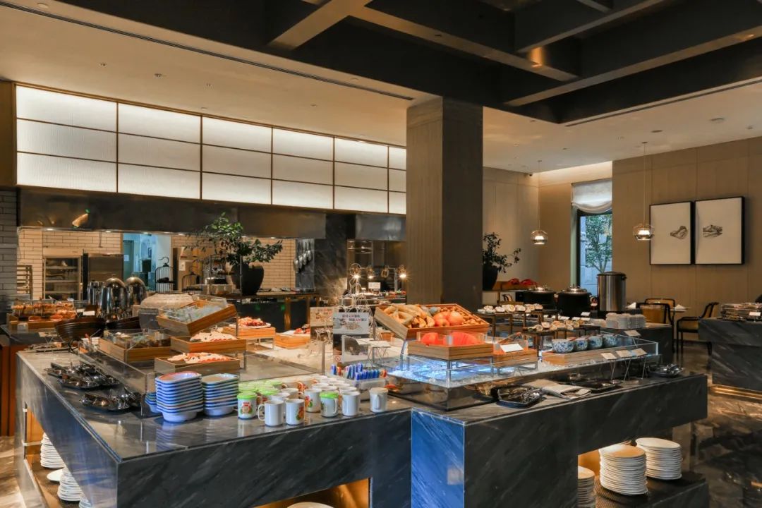 酒店的全日餐厅位于零层,自助早餐就在此供应,而在正餐时段,这里则作为老北门饭店的大厅零点区域。