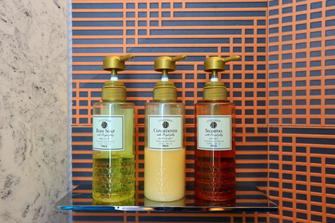 至于大家关心的洗护备品,酒店考虑到环保因素选择了大瓶装,但是品牌却是颇受好评的日系名媛Pola,它家的蜂皇浆系列颇受好评,用起来也着实舒服。对了,卫生间里是Toto的卫洗丽,还是挺舒服的(仅此房型及以上的套房配备)。