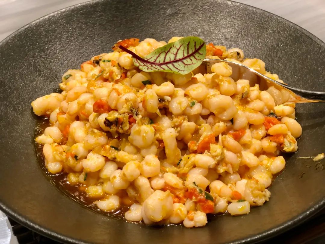 而今年,老北门饭店还做了很多以蟹为主题的特色菜肴,蟹粉河虾仁、蟹黄烩海珍、蟹粉狮子头、蟹脚肉扒山芋藤等等,既让人享受了蟹的鲜美,又释放了剥蟹的繁琐感,让人吃出了幸福感。