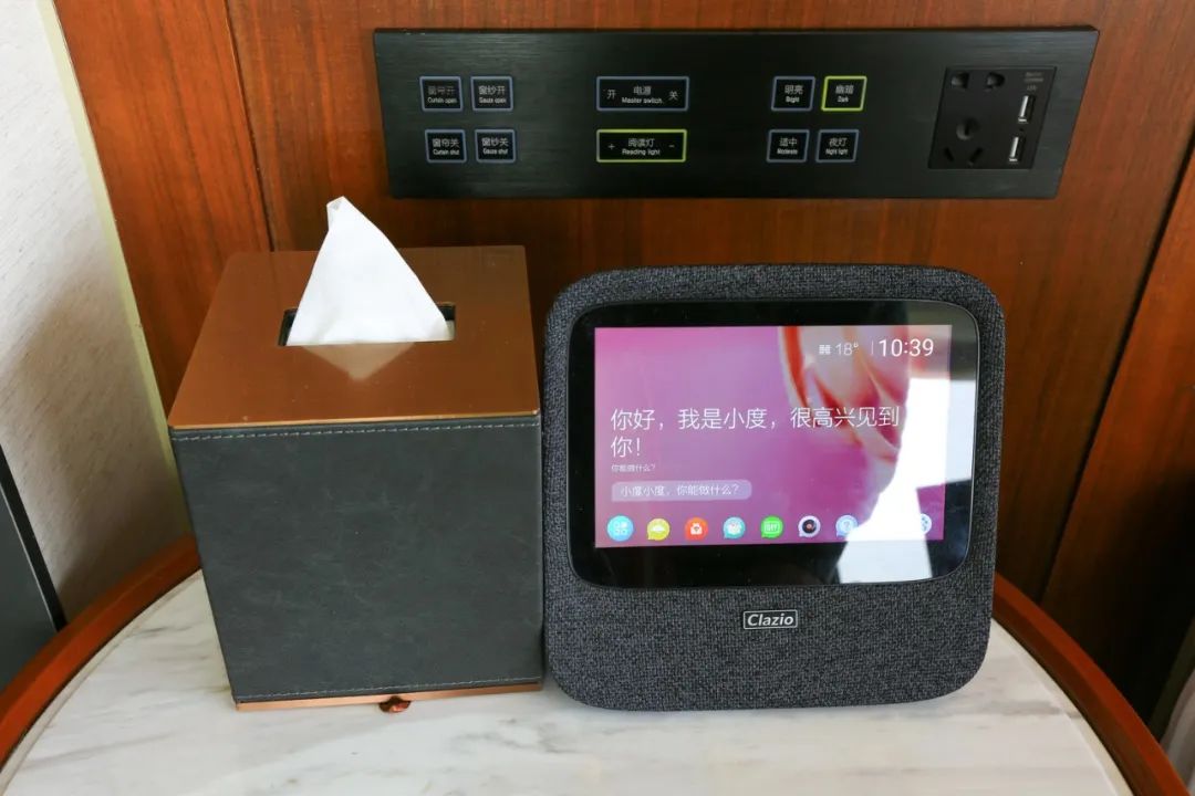 客房采用小度智能终端来控制灯光、窗帘等电子设施,只需语音唤醒即可操控,非常方便。当然如果不习惯的,各处的触摸式面板也很方便,指示也非常清楚,看得出有做过用心的设计。