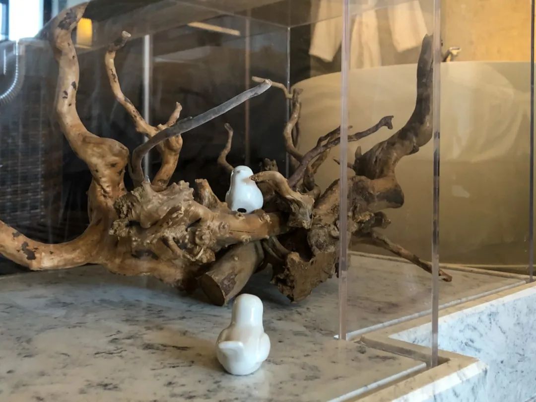 在公共区域里,苏绣、团扇、太湖石等极具本地个性的元素被解构成网红款旋转楼梯、装饰画等,融入到整体的环境中去。而太多的装饰小品,出现在客房的廊道一角或是大堂的拐角空间里,精致地展示着江南风情。
