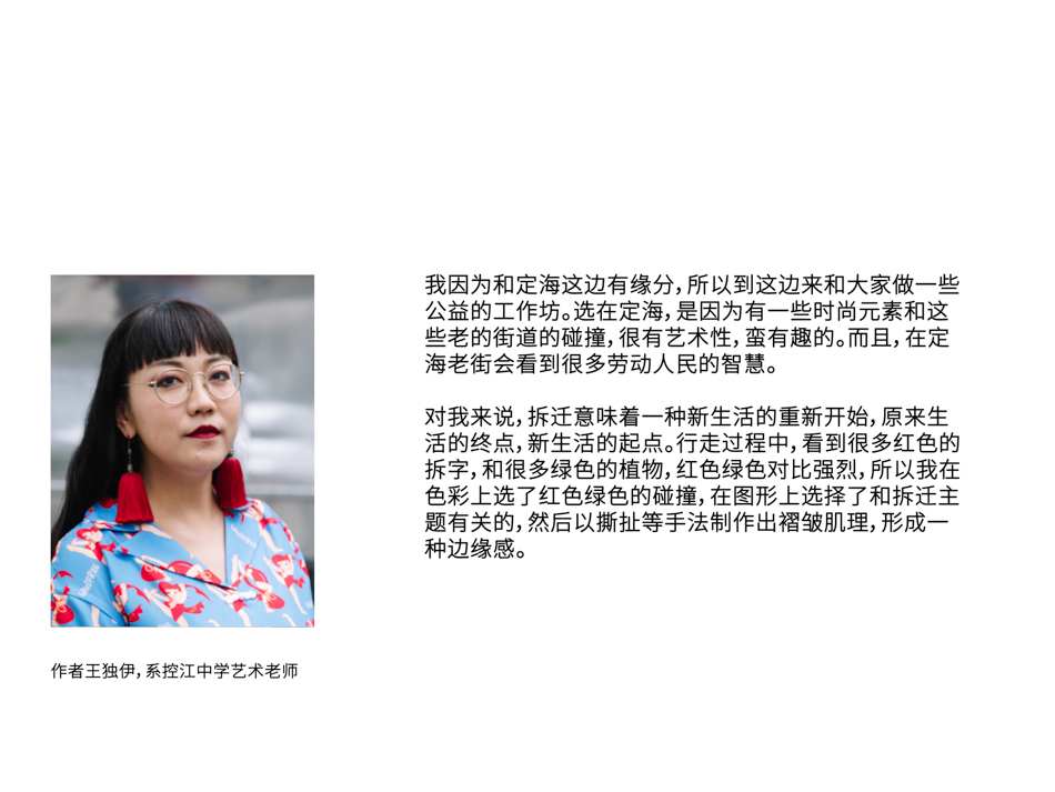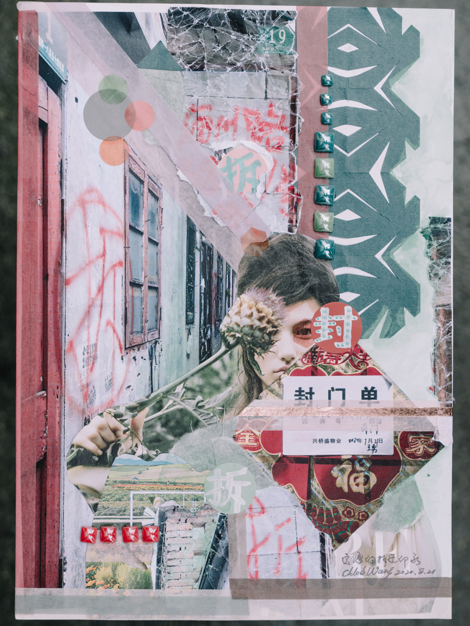 “过渡”博物馆,就是一个通过线上平台孵化的项目。作为博物馆内容的一部分,2020年8月28日,控江中学美术老师王独伊受邀加入工作坊,与参与者行走拆迁中的区域,拍摄素材,然后以拼贴的形式进行创作。