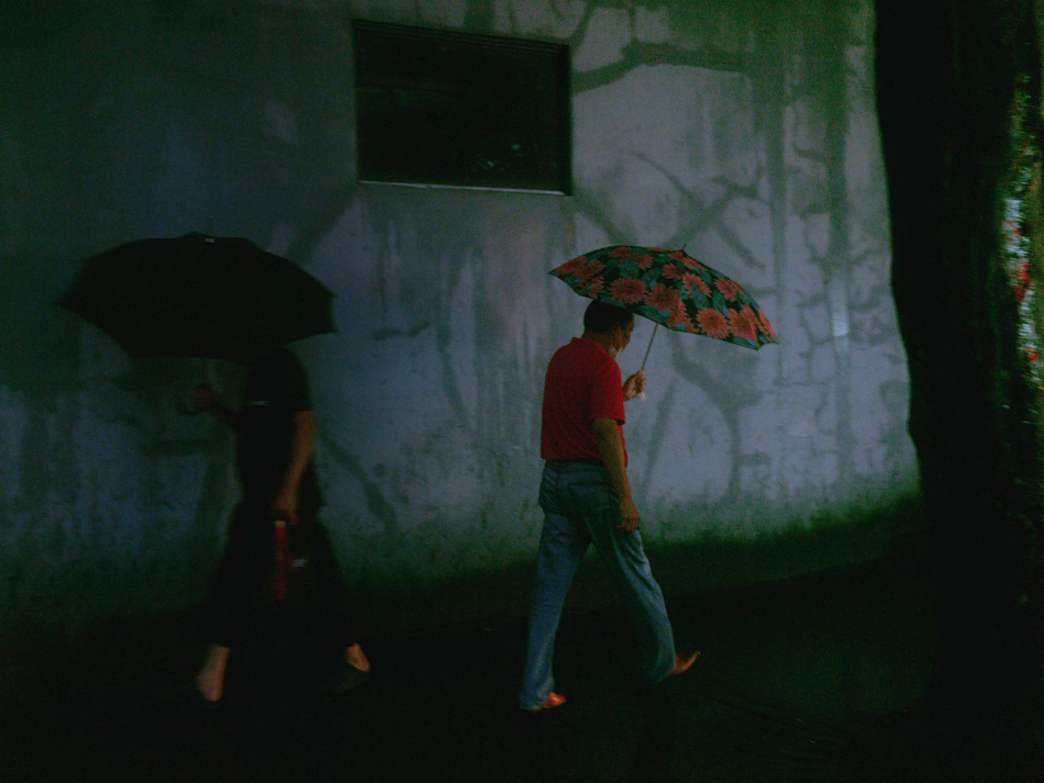 潮湿的雨夜,一只猫躲在抛弃的三夹板下。