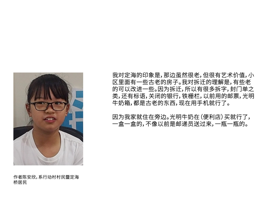 直接或间接参与的,多是本身住在社区的老人与小孩。老人有漫长的生活经历可以述说,孩子们则可以用新鲜的眼光观察。这片百年间混杂了几代人生活痕迹的区域。既是关于拆迁的博物馆,也是关于个人、社区、日常生活的博物馆。