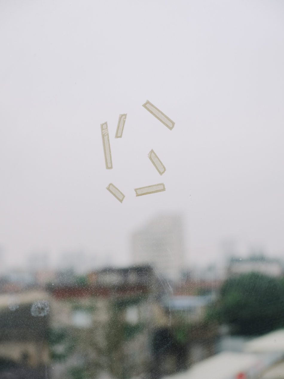 房屋征收基地办公室设在定海桥一处空置厂房,2020年9月18日,无人的房间里,玻璃窗沾着几段双面胶,窗外是将要拆迁的杨浦129、130地块。从许多角度看,定海桥一带,都像上海的东北。