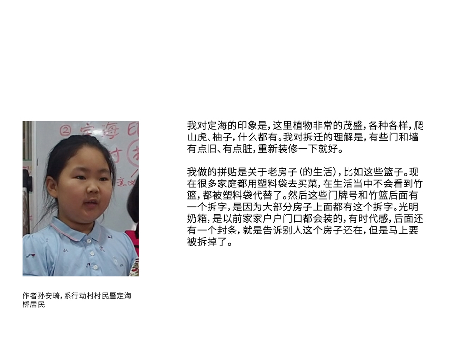 动迁地块每隔几十米就能看到保安。“观察和体验,本身就是这个活动的目的。”在吴秋玲的设想中,行动村作为孵化具体行动的平台,唯一预设的产出,就是推动具体的行动。参与的人在行动中体验历史,体验生活,追溯自己的生活经验,将与记忆对应的视觉符号放置在一起,并在符号关系中表达情感,或是特定的主题。