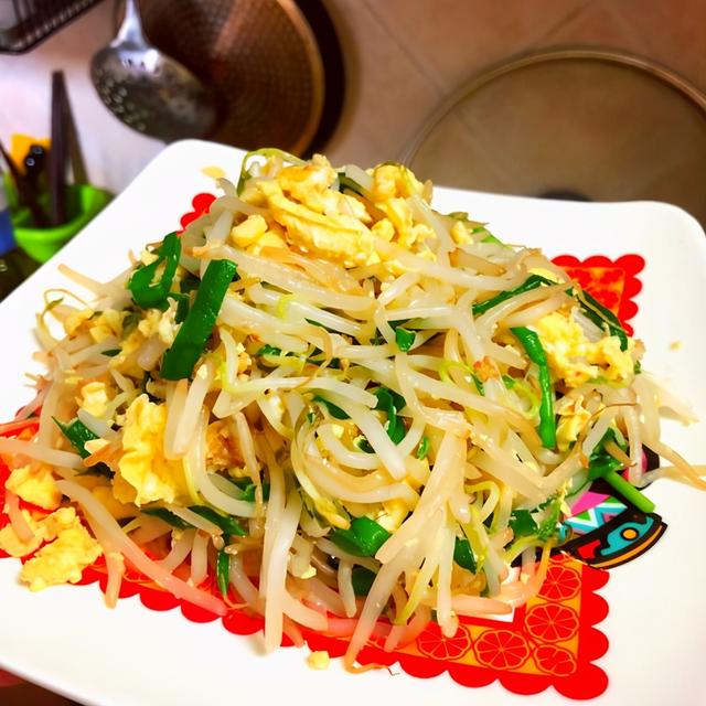 那么,我们好吃又下饭的豆芽韭菜鸡蛋就做好了。赶紧来试试吧。