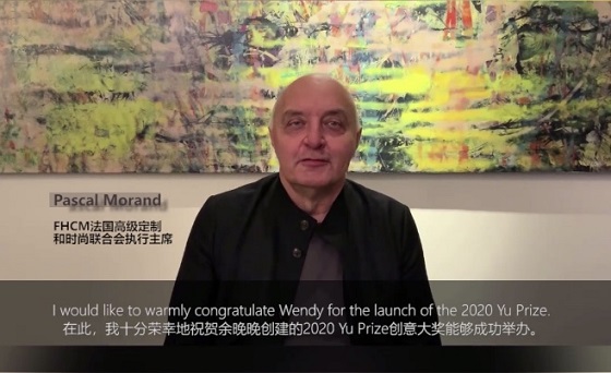 巴黎高级定制和时尚联合会(FHCM)执行主席Pascal Morant也通过视频连线的方式发表致辞,肯定了Yu Prize发挥的重要推动力,从全球角度对中国时尚创意产业的未来给予关注和期待。