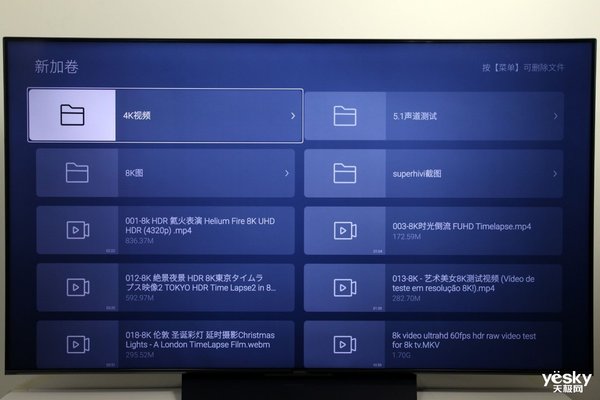 对8K视频的解码支持是8K电视应该要具备的功能。这方面,我们播放了几个8K分辨率视频,创维Q71电视在测试中可以支持H264编码30帧的MP4格式、H265编码24帧的MP4格式、VP90编码的webm格式等多个文件。