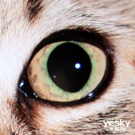 为了让大家有个更直观的了解,笔者翻出来了之前评测的图,以下是4K电视播放同一8K分辨率图片的效果。可以看到,下图的细节没有上图那么清晰,毛发未能根根分明,瞳孔轮廓的边缘也不够清晰,有不少细节没能呈现出来。