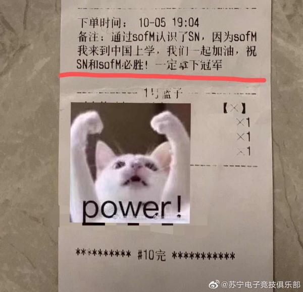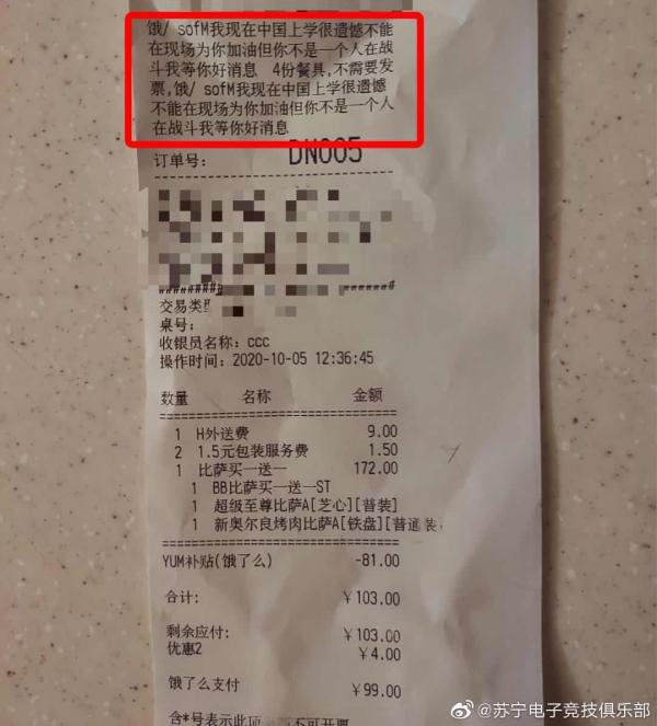 粉丝通过点外卖的方式支持SN战队。