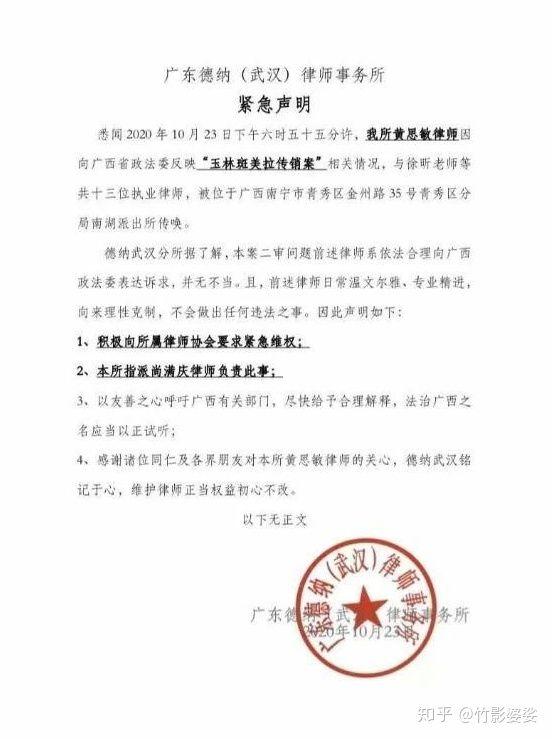 事件发生后引起了律师界的强烈反映,很多律师表示立即去广西增援,而广东德纳律所武汉分所首先发表紧急声明。