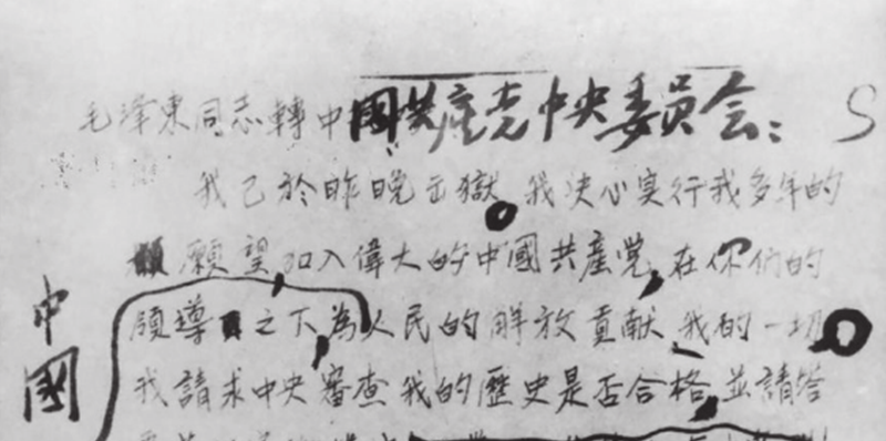 出狱后十个小时,他呈上一封入党申请书,表达了自己想再次入党的心愿。