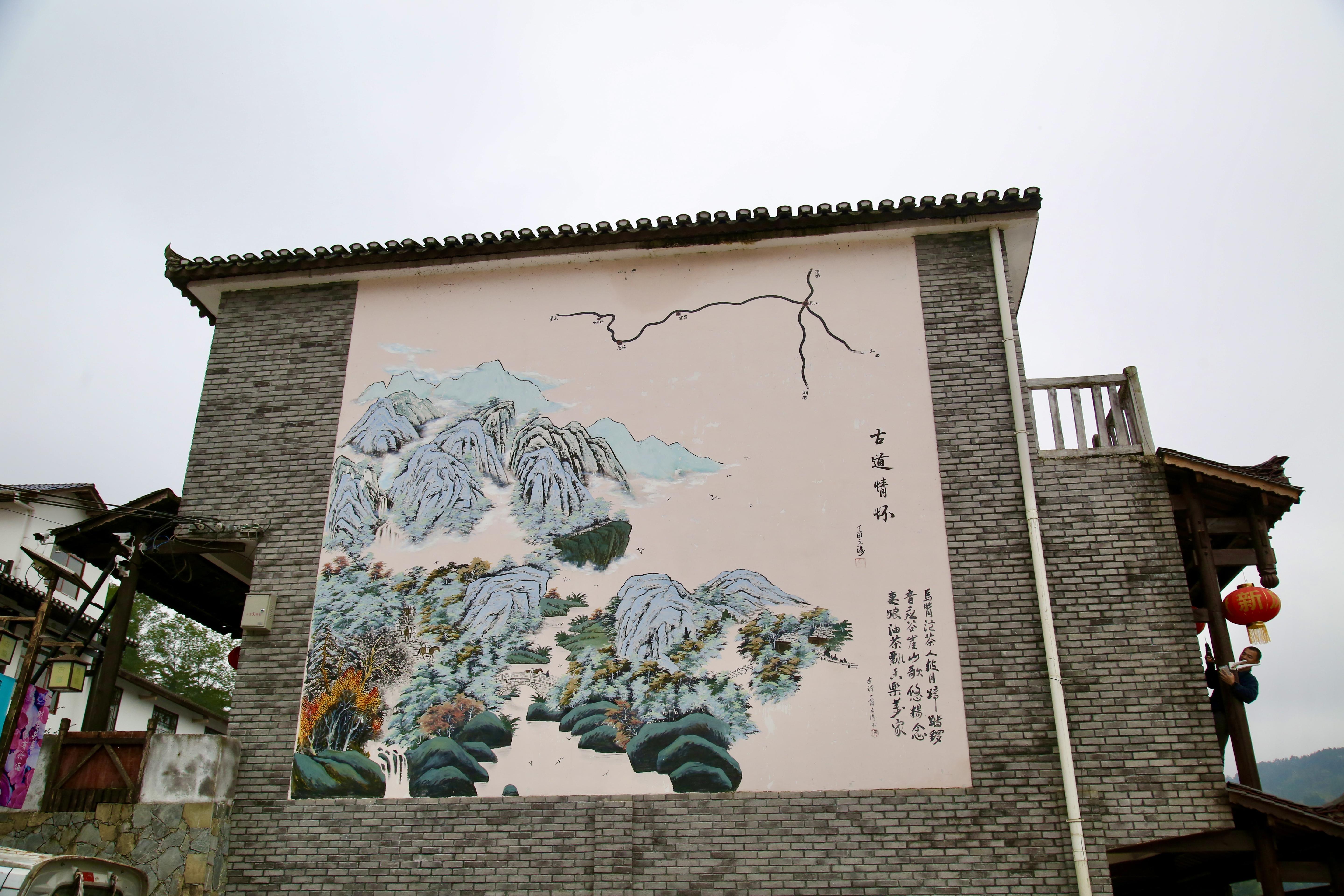 远望洞下槽,云雾缭绕、青山如黛,青瓦白墙的特色民居错落有致点缀在苍翠茶园之中,村委会前湖岛连片相映成趣,俨然一幅动人的山水田园画卷。村委会广场连着一条古街。这里民居古色古香,富有土家风情的特色壁画吸引眼球,不时还有盛开的金银花、牵牛花探出栏杆。