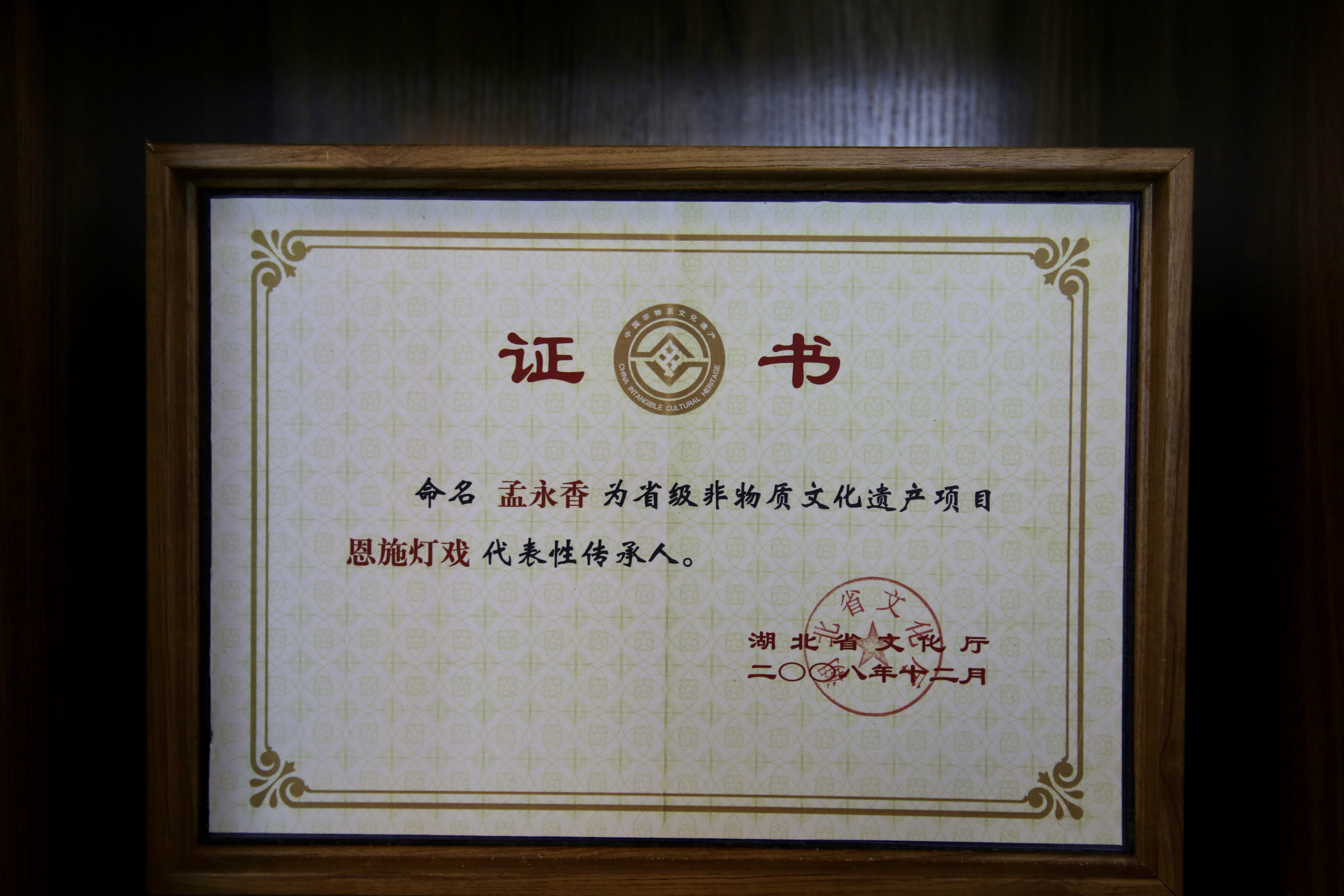 年逾七旬的孟永香老人就住在村里,她是恩施灯戏第九代传人,也是国家级非物质文化遗产传承人。