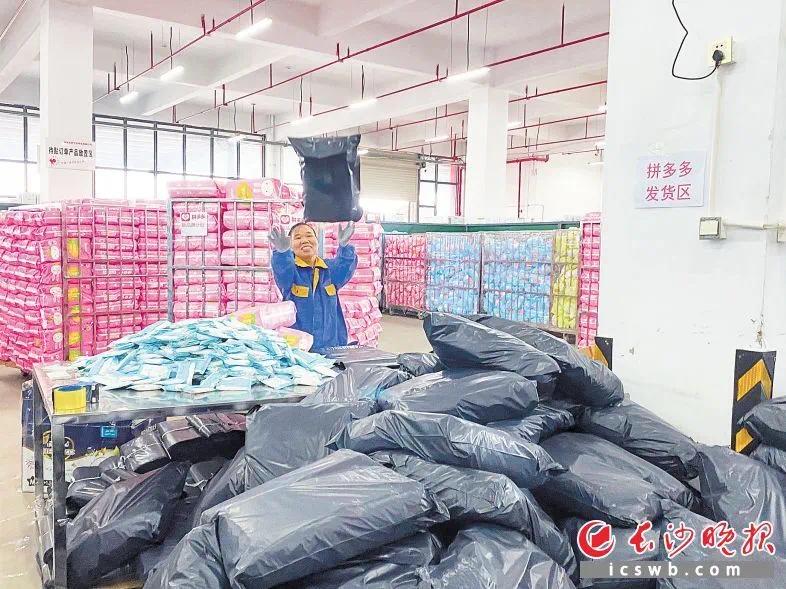 位于宁乡经开区的湖南洁韵生活用品有限公司厂区,每天十几辆大型货车要往全国发运三万多个电商包裹。刚生产下线的“贝婴爽”纸尿裤成品直接打包,由邮政EMS快递送往消费者手中。