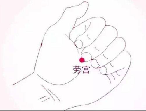 劳宫穴位于手掌心,当第2、3掌骨之间偏于第3掌骨,握拳屈指时中指尖处。一手握拳,揉搓另一只手的劳宫穴,直至手心发热。两手交替进行。长期揉搓劳宫穴具有清心火,安心神的作用,用于治疗失眠、神经衰弱等症。