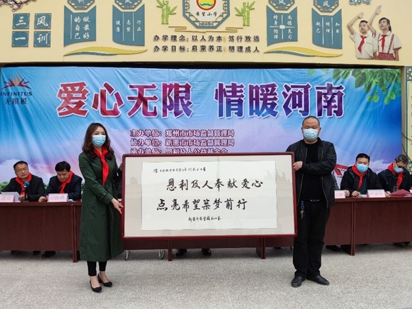 2020年10月28日,无限极(中国)有限公司河南分公司联合郑州市市场监管局,在新密市大隗镇王沟希望小学开展“爱心无限 情暖河南”捐资助学活动,通过思利及人公益基金会向新密市大隗镇王沟希望小学、苟堂镇关口小学捐赠空调、教学设备及学生用品,改善农村小学孩子们的学习环境,为孩子们安心学习、茁壮成长创造条件。