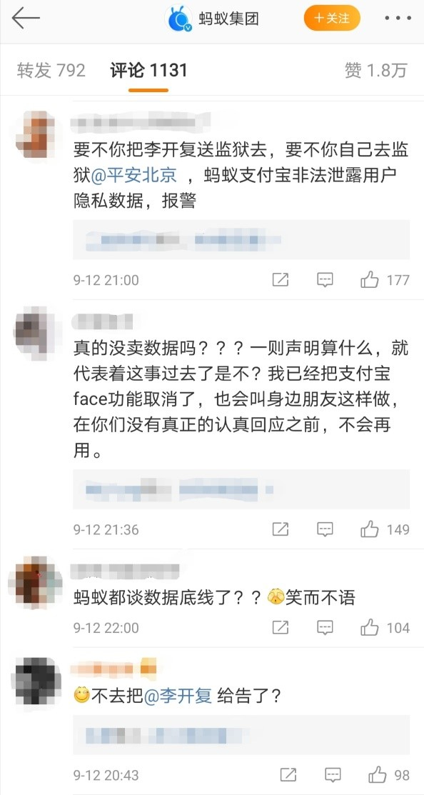 蚂蚁再次表示,数据安全与隐私保护是生命线,微博网友也纷纷表达了自己的看法。