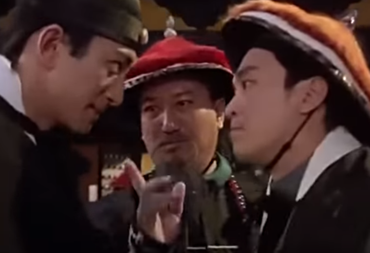 这种情景错置很常用。比如周星驰《九品芝麻官》里,八部巡按升堂跟方唐镜对垒之前,俩人一副要打拳击的架势。这就是越熟悉拳击和传统审案的人,越会觉得好笑的地方了。