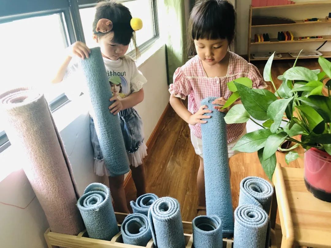 在蒙氏的环境中,每个细小的设置背后都需要有一个原因支撑。比如,工作完之后把工作放回原位。所以当孩子想再拿这个工作,或者其他孩子想要做这个工作的时候,它就在那儿。遵守规则,孩子们是从中受益的。而且事实上,孩子们希望支持这些规则。
