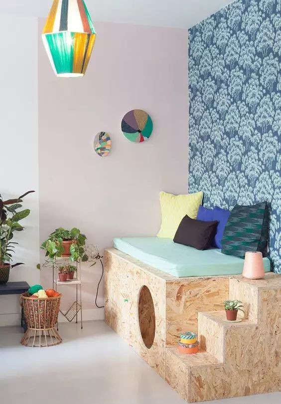 2.欧松板既美观又贴近自然:欧松板可以直接在表面上刷清油,直接使用欧松板设计的产品有一种“未完成”的耐人寻味感,简单明了,还带着一股贴近自然的田园气息。