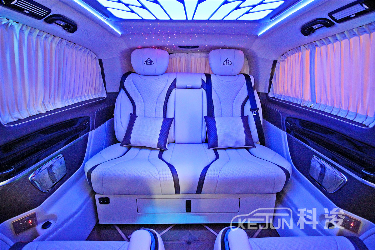 新款三色飞翼式顶灯,两侧七色氛围灯带,劳斯莱斯级车顶星空灯设计,商务休闲随心转换,对未来运筹帷幄,彰显车主尊贵身份;双侧220V 300W电源接口设计,解决移动多媒体设备充电的烦恼。第三排座椅可智能一键放倒成沙发床,老人的休息圣地,小朋友的娱乐天堂。