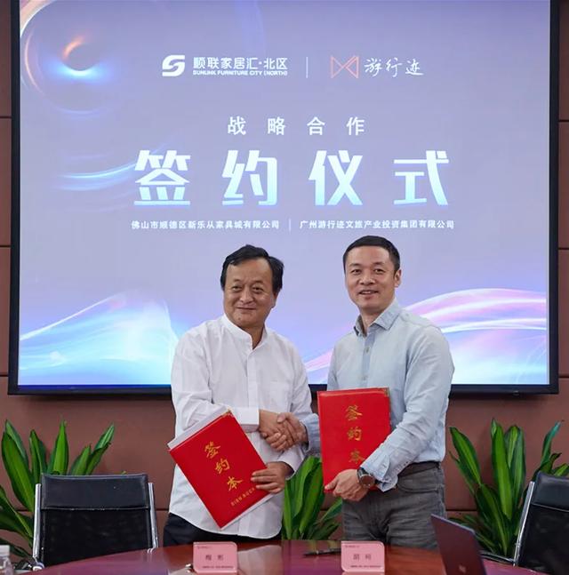 2020年10月29日上午,游行文旅产业投资集团与顺德乐从顺联家居汇·北区在顺德乐从举行了战略合作签约仪式。游行迹文旅产业投资集团董事长梅彬、顺联家居汇·北区总经理胡柯等领导出席了签约仪式。