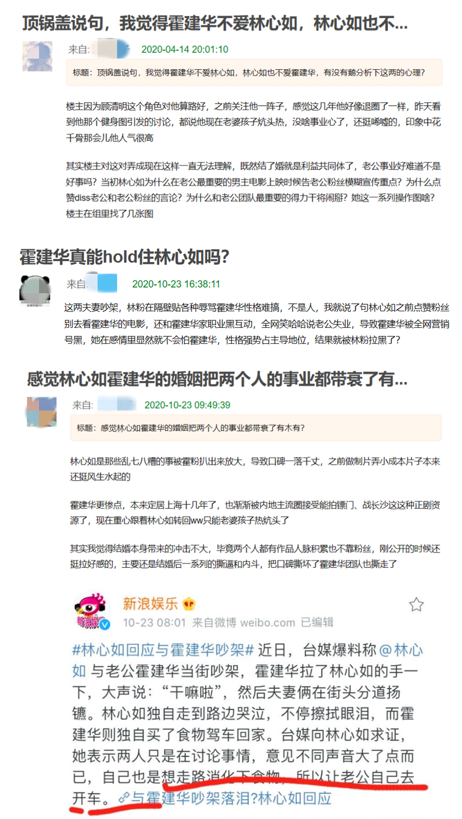 像是林心如粉丝说霍建华粉丝把林心如的负面新闻再度放大,导致林心如口碑一落千丈。像是林心如与霍建华某些粉丝"杠"起来,可霍建华没有出来说话。又像是近日他们被质疑当街争吵,霍建华甩下林心如一个人,而林心如事后删秀恩爱po文等等。可以说,林心如与霍建华的结合,被不少网友认为糟糕至极。