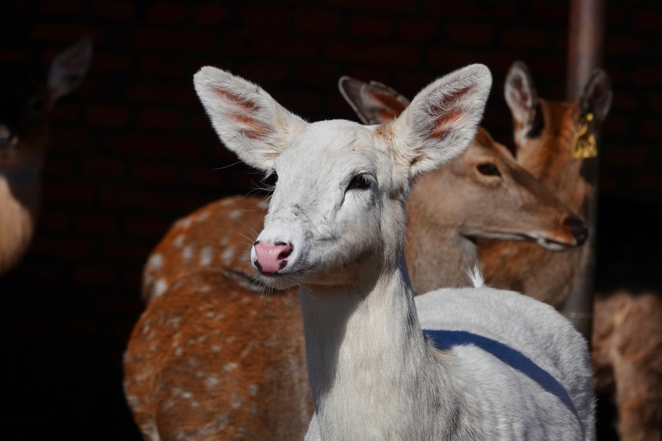 当在鹿乡一户养鹿场里,看到白鹿的时候,第一感觉就是好可爱。尤其是在鹿群之中,显得那么与众不同,而且在鹿乡也只有这一只哦!所以借其吉祥的寓意,希望大家都有好运气。