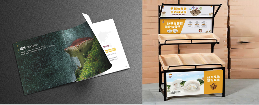 基于“温暖”、“家庭”的整体调性,众泽为菇都制定了包括海报、画册、H5、折页、产品包装、终端展示、招商手册在内的全套视觉,打造完整的品牌形象系统。