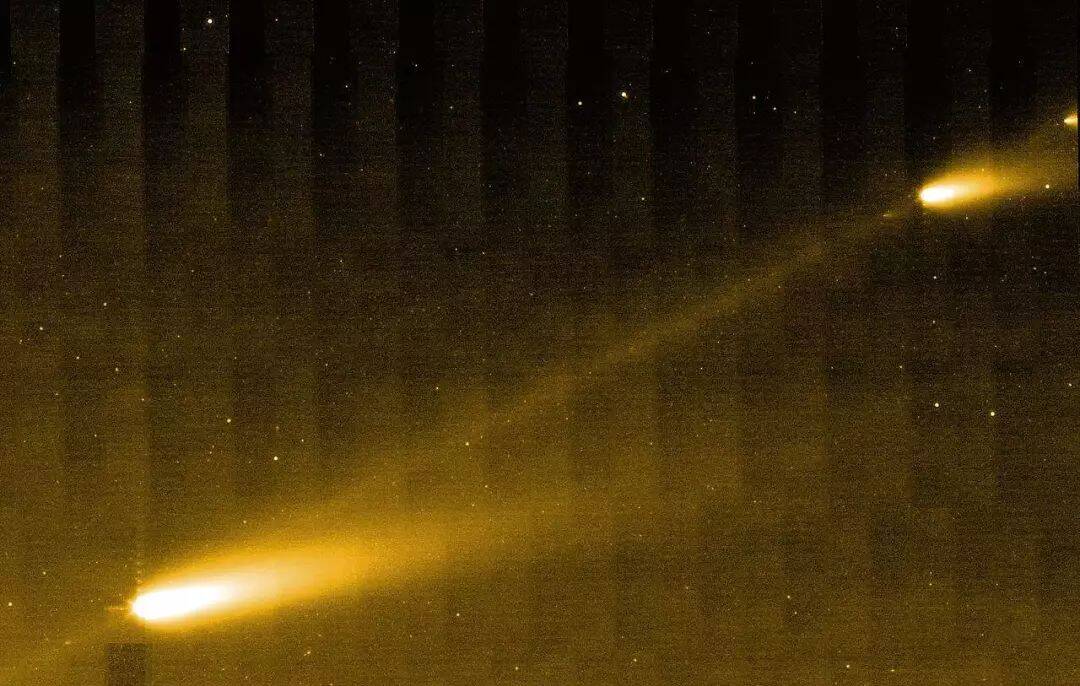 图解:这是狮子座流星雨中的一颗流星,照片显示了流星以及其余辉和尾流,它们各自有不同的组成部分。