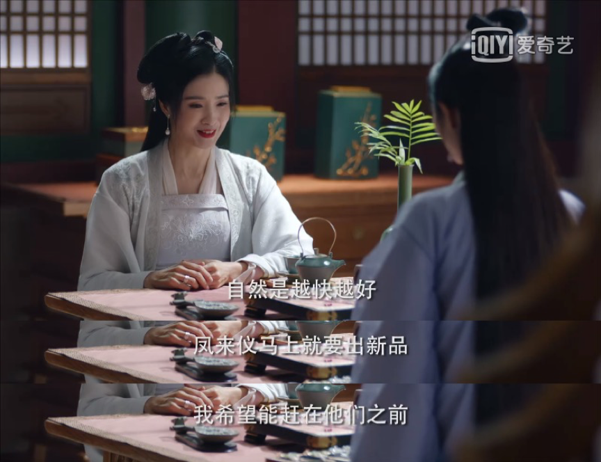 另外,《如意芳霏》中如意楼和凤来仪两家店关于“古饰”生意的故事段落也体现了许多现代化的商业竞争手段,例如在新品上新时,需要配合令人印象深刻的宣传手段,如意楼就采用了引入饰品推荐字画的方式来吸引顾客购买,更多地展现商业社会所需要的能力。