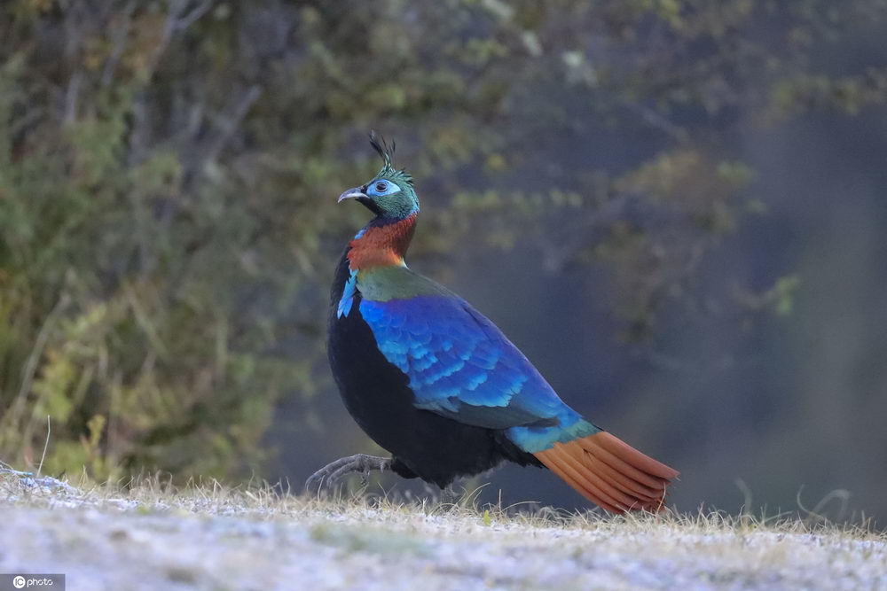 西藏洛扎县,棕尾虹雉又名九色鸟,尤其是雄鸟外观非常美丽,其羽冠奇特,是所有虹雉中最漂亮的,在尼泊尔被奉为国鸟,目前已列入濒危物种红色名录。