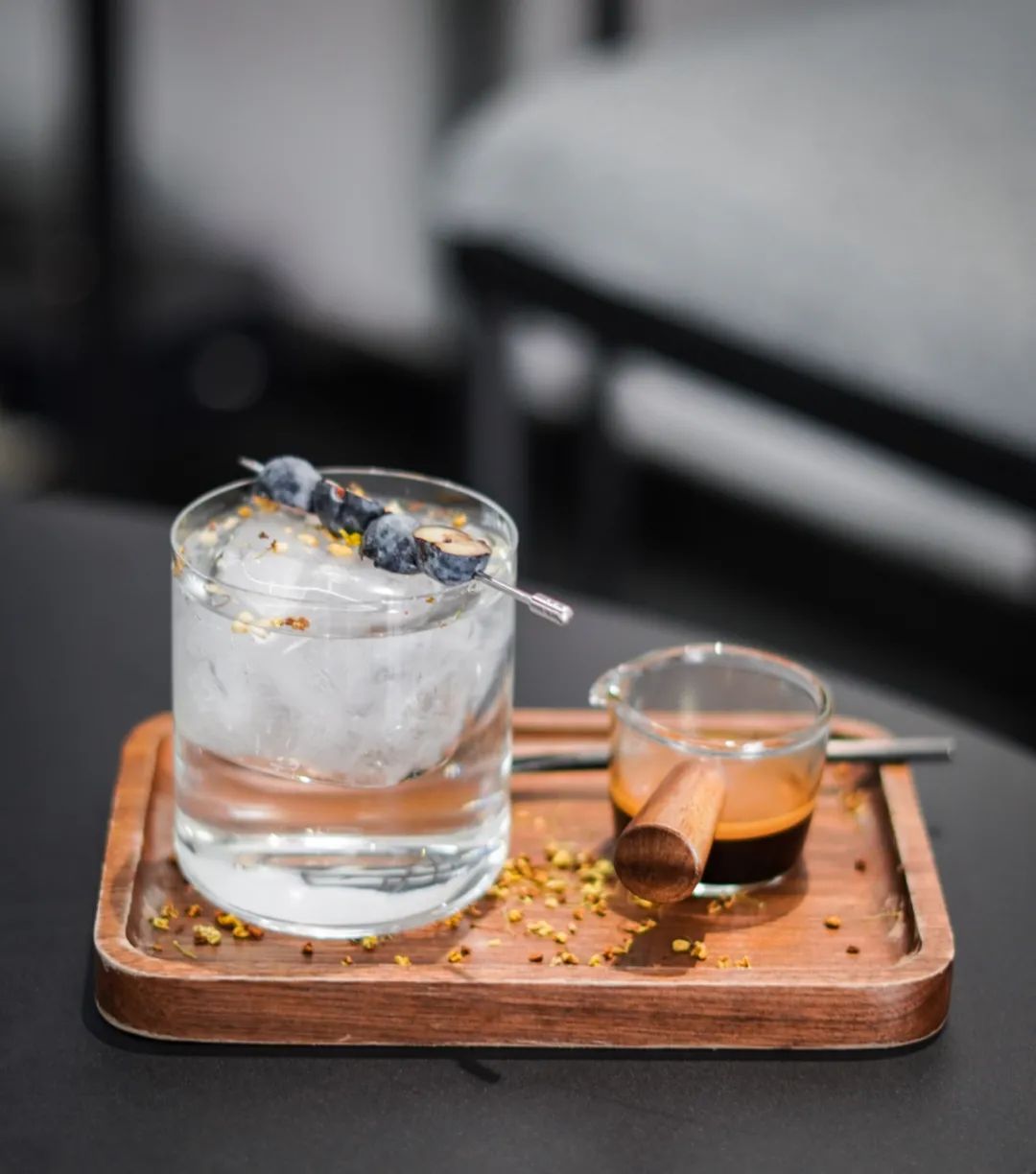 桂花坚果美式是麒麟的招牌特调之一,加入了自制的桂花糖水和果酱后,整体桂花香气淡雅清甜,入口感受不到咖啡的酸或苦,只有香气和柑橘风味浮现其中,坚果碎的加入则更增进了口感。