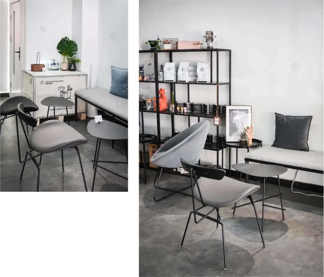 进门可见吧台内放置着量产的KEES咖啡机,就知道这家店不简单;店内设计是以黑白灰配色为主基调,空间宽敞,简单干净。