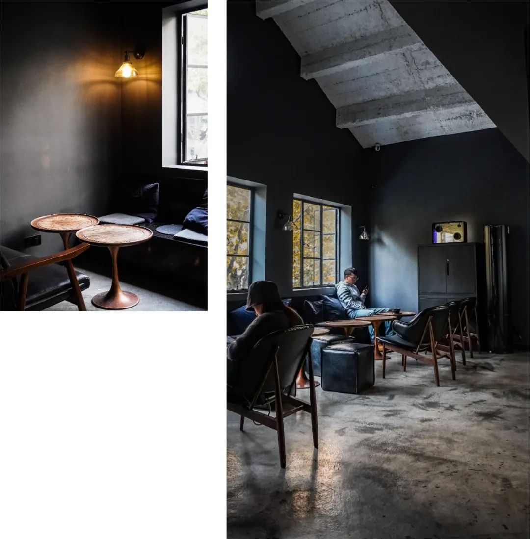虽然店内的色调几乎全是暗沉的黑色系,但通过自然光和店内氛围灯光的搭配,久坐也并不会产生不舒服的压抑感。