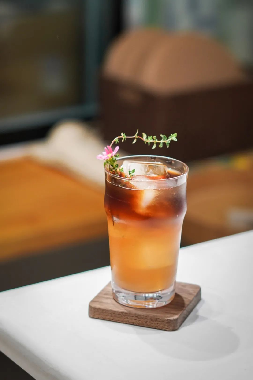 香橙酱、茉莉花茶和埃塞冰滴的组合看似简单,但精髓在于其中混合的比例;橙花冰酿的风味递进极具层次感,入口前段橙香浓郁,茉莉花的清香慢慢浮现,最后又回到淡淡的橙子香气作为收尾,咖啡的明亮香气始终作为陪衬贯穿着整口,很有意思。