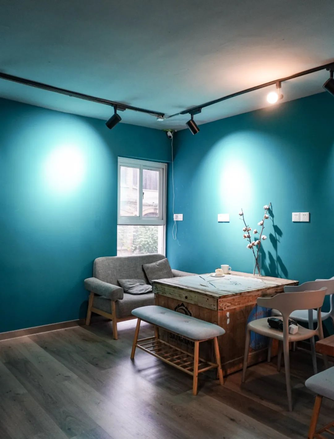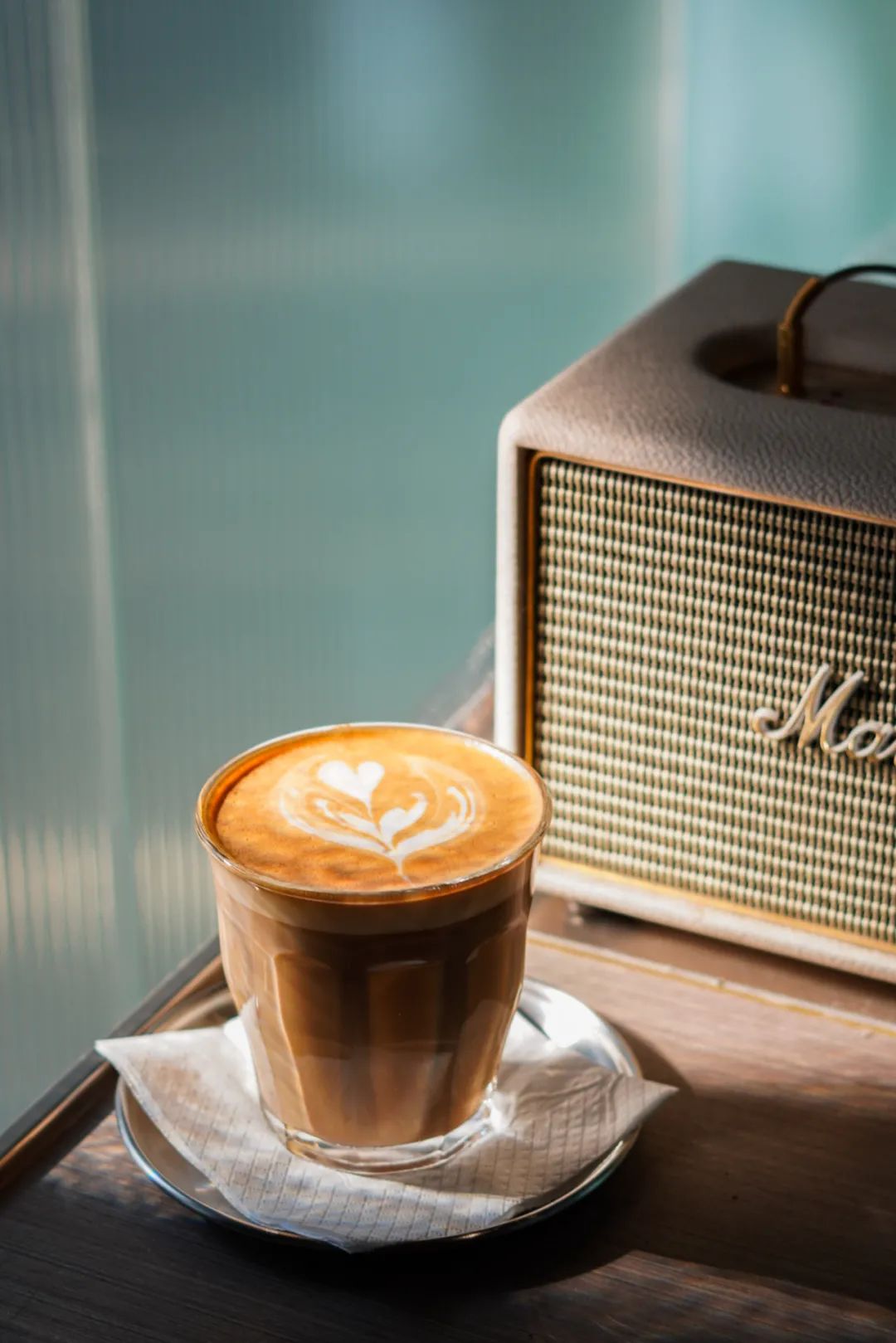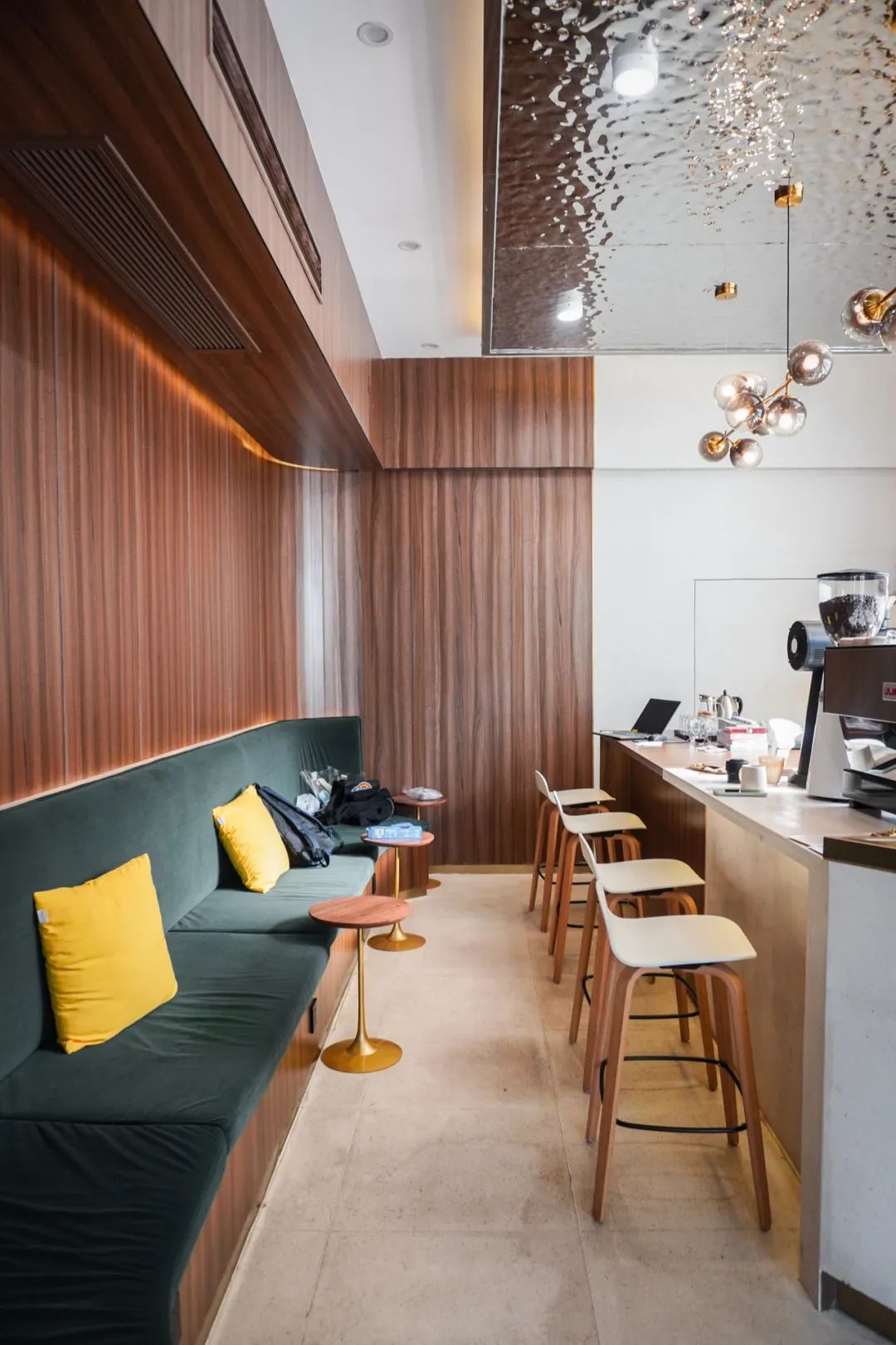 店内面积不大,一整面磨砂玻璃把自然光柔化到一个很适中的亮度,拿电脑坐在吧台办办公还是很舒服的。