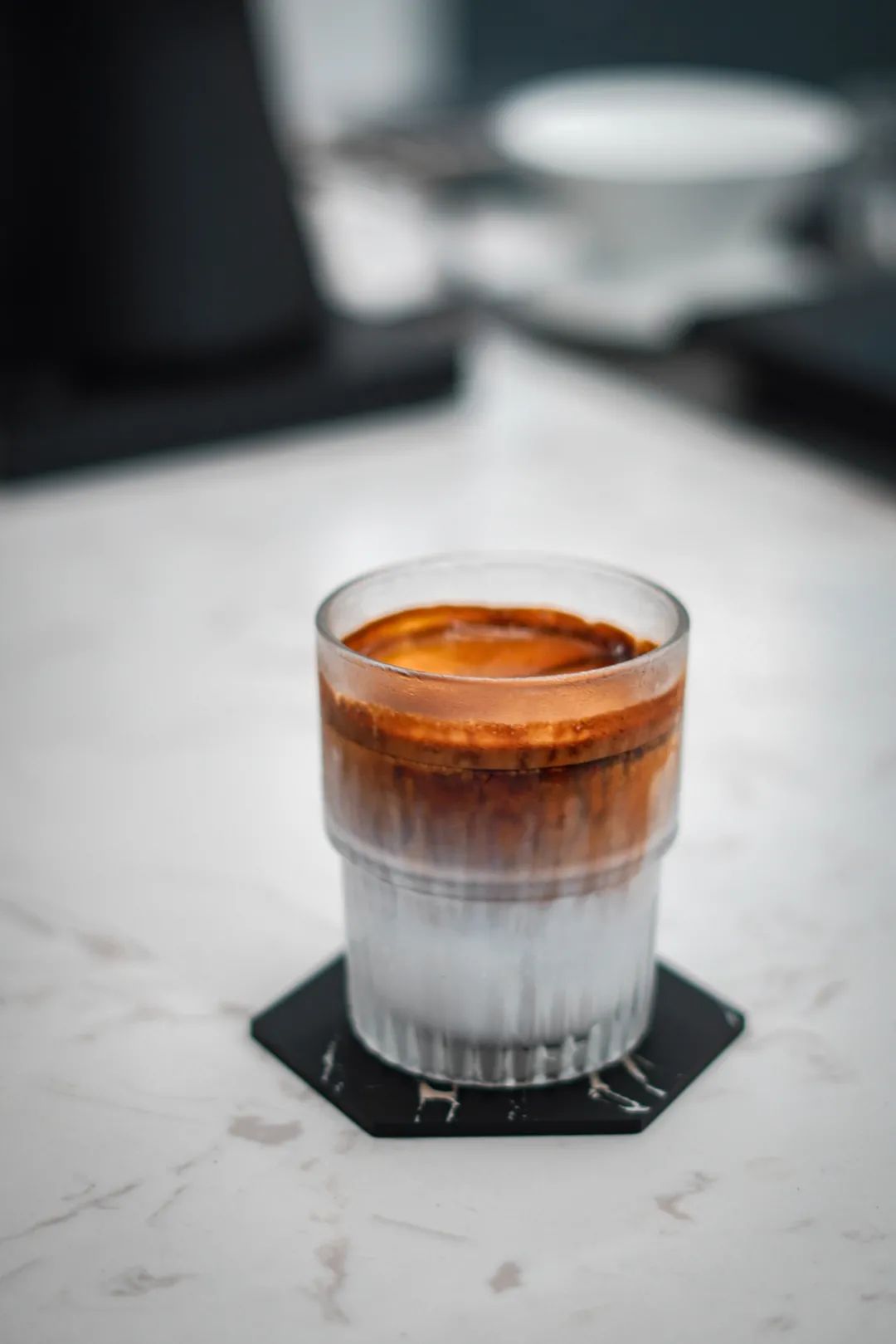 上层奶泡口感轻盈细腻,比蒸汽打发的会更扎实些,下层冰凉的特调混合着粗放的黑糖与巧克力风味瞬间就能占据味蕾,还不及感受,很快又在后段浮出一阵颇为亮眼的椰子香气,层次丰富。