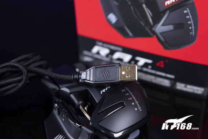 RAT 4+鼠标的线材使用了软编织线,USB接口进行了镀金处理,相当有辨识度。