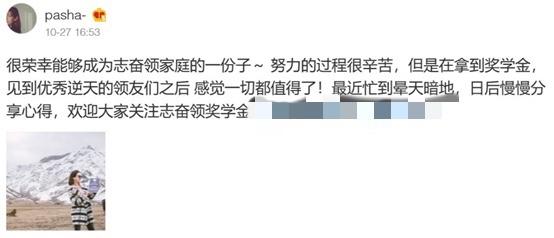 据悉,帕夏古丽·都鲁坤前往国外是为了学业。并且她还拿到了志奋领奖学金,该奖学金在世界都有很高的知名度,而选拔标准也十分严格。帕夏古丽·都鲁坤能从众多申请者中脱颖而出,由此可见她有多么优秀。