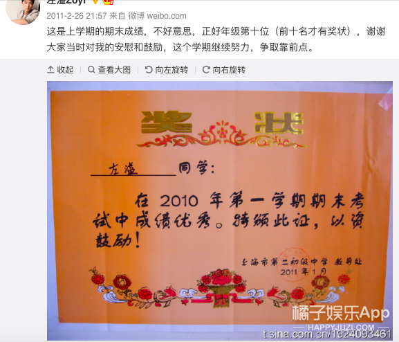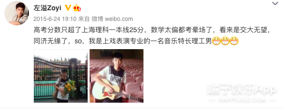 左溢以超过上海理科一本线25分的成绩考上了上海戏剧学院表演系▼