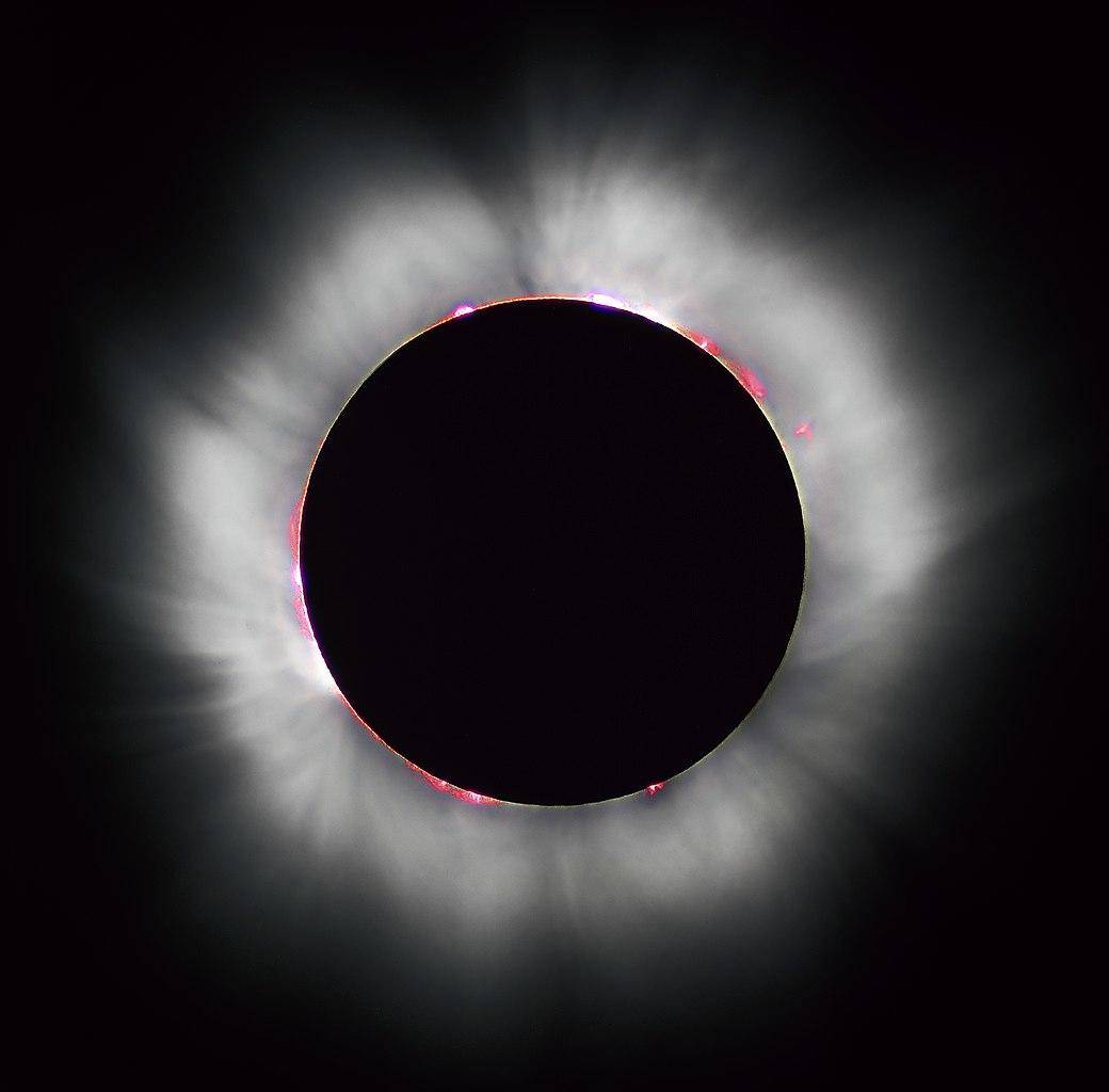 图解:在日全食,太阳的日冕和日珥是肉眼可见的。