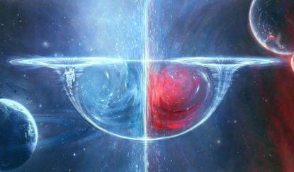 然而对于几十亿倍太阳质量的超大质量黑洞来说,黑洞表面附近的潮汐引力非常小并且是可以生存的。