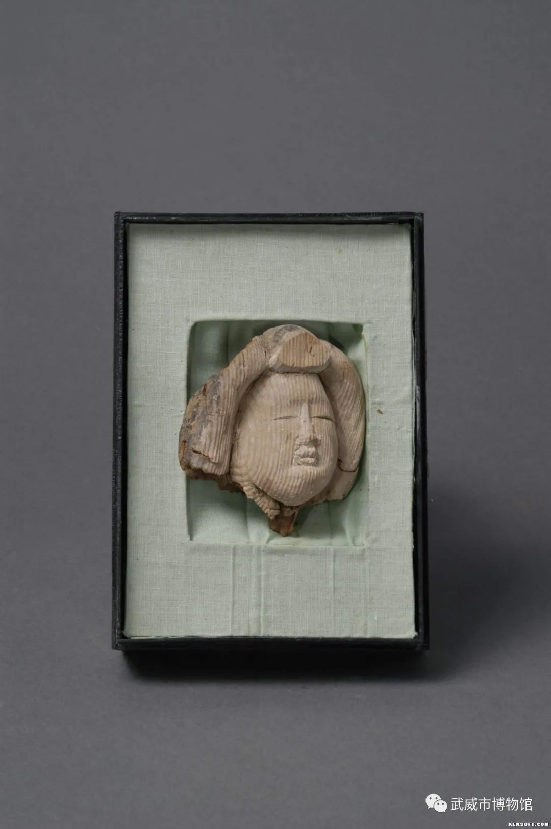 唐代 ,漆木器,长:6.5,宽:5.5。松木质。头顶束髻,额头较高,鼻梁高挺,面部丰腴,神态端庄。似唐朝仕女形象 。
