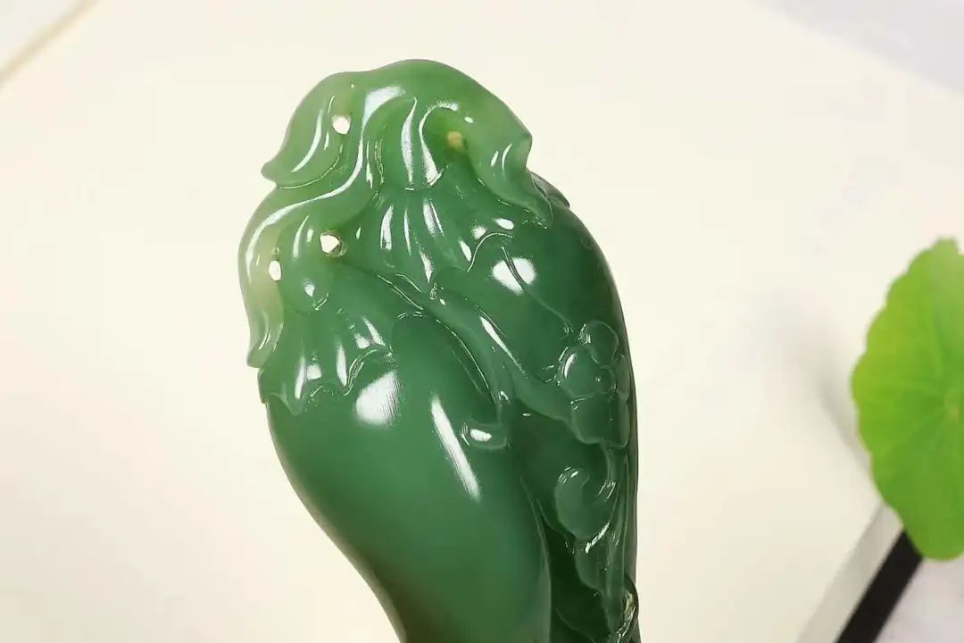 碧玉中的黑点主要是由铁离子和铬离子的聚集形成的。铁离子达到一定数量且其颜色为浅绿色,而铬离子达到一定数量且其颜色为明亮的绿色。因此,带有黑点的料通常具有较深的绿色。所以,不要只是问:碧玉的颜色越深越好,还是越浅越好?首先查看玉质,然后查看颜色。碧玉的绿色浓度越高,它越有可能具有不均匀的颜色和黑点(铬尖晶石)。结构通常不是很精致,所以当您选择碧玉要有自己在意的侧重点,完美碧玉是可遇不可求的。